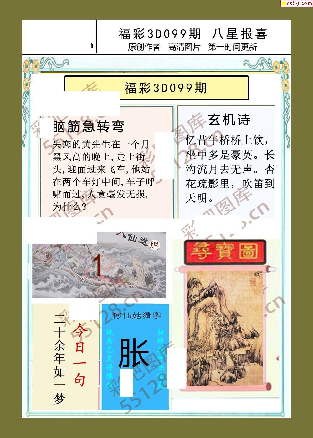 八星报喜26年099期福彩3d画谜