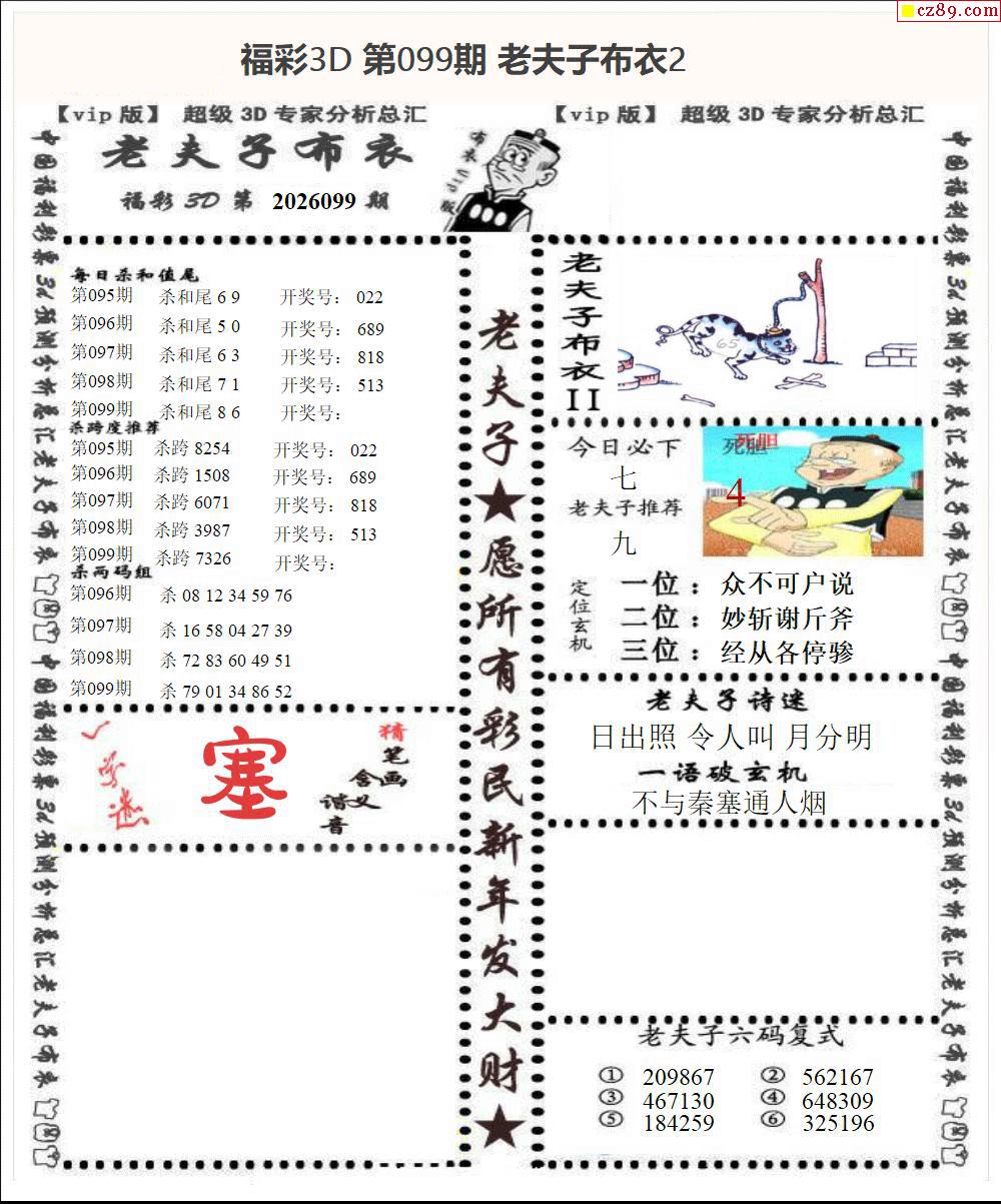> 老夫子布衣2026099期3d图谜