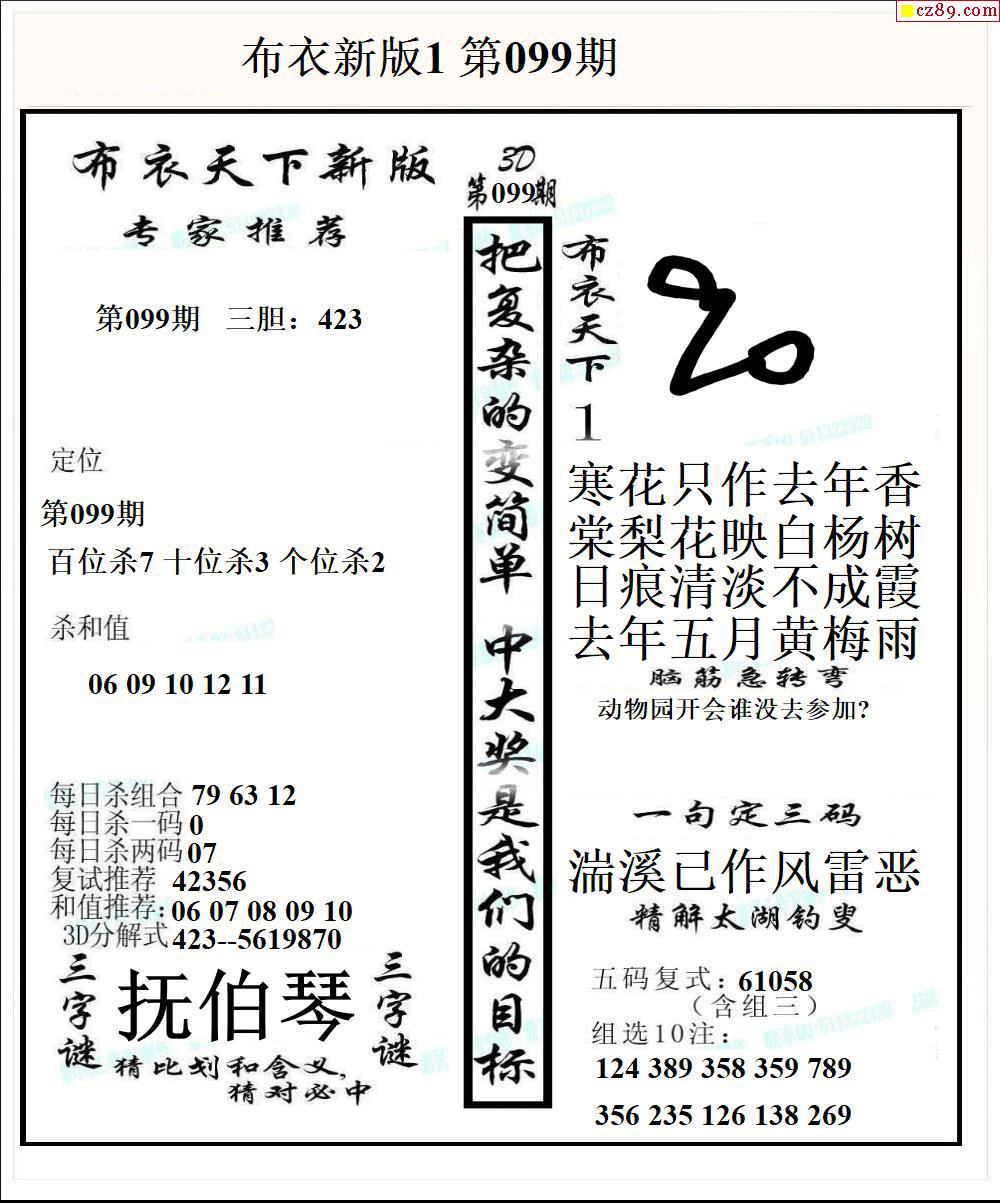 布衣天下新版2026099期3d图谜
