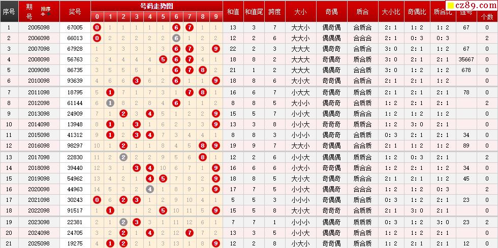 第098期体彩P3历史同期对比